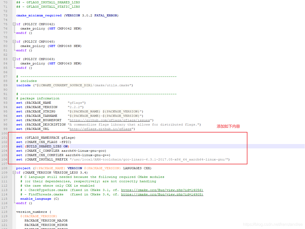 lbw@DESKTOP-LBW22:/mnt/d/ref/gflags-master/_build$ cmake .. -DGFLAGS_NAMESPACE=gflags -DCMAKE_CXX_FLAGS=-fPIC -DBUILD_SHARED_LIBS=OFF -DCMAKE_C_COMPILER=aarch64-linux-gnu-gcc -DCMAKE_CXX_COMPILE