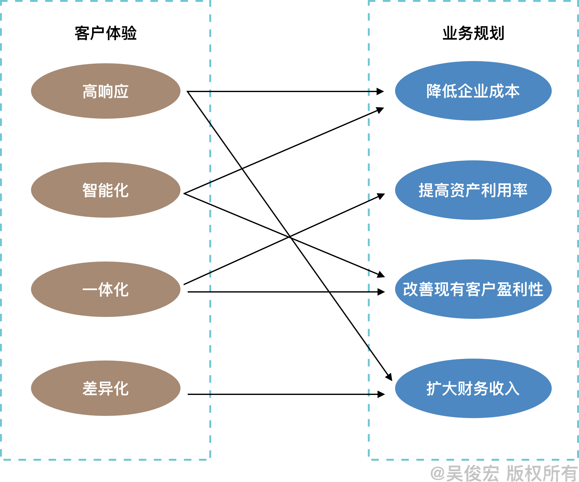 客户体验,主要描述了针对目标客户群的价值主张。业务规划,主要描述了企业的有形价值。用户体验和业务规划作为宇宙飞船的左右机翼,能给飞船提供足够的升力。