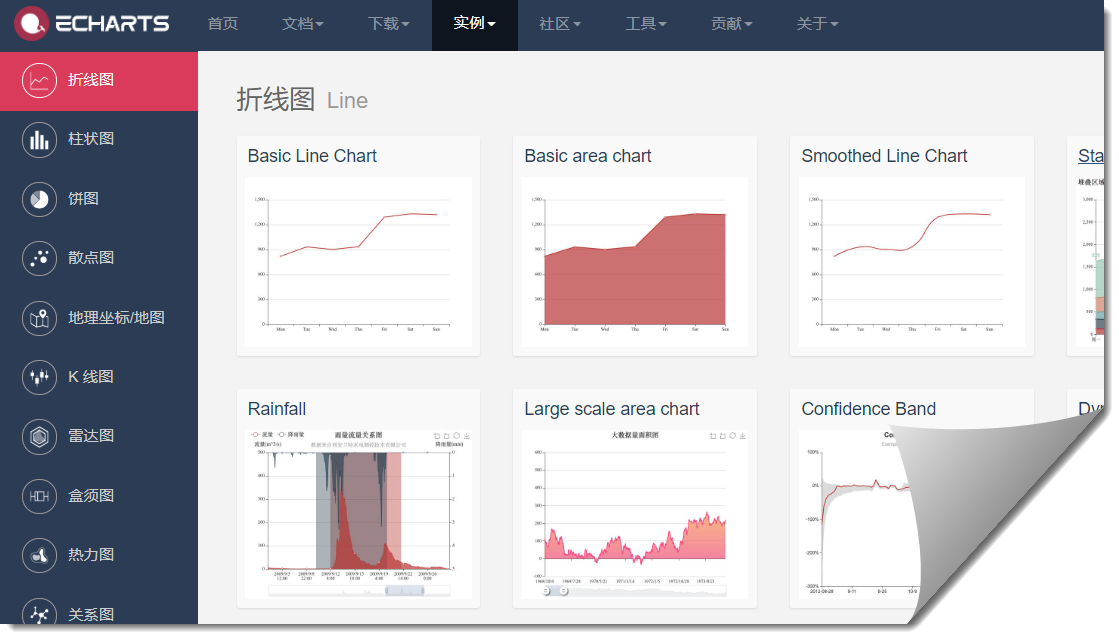 更多的案例可以参考官网的展示介绍:https://echarts.apache.org/examples/zh/index.html