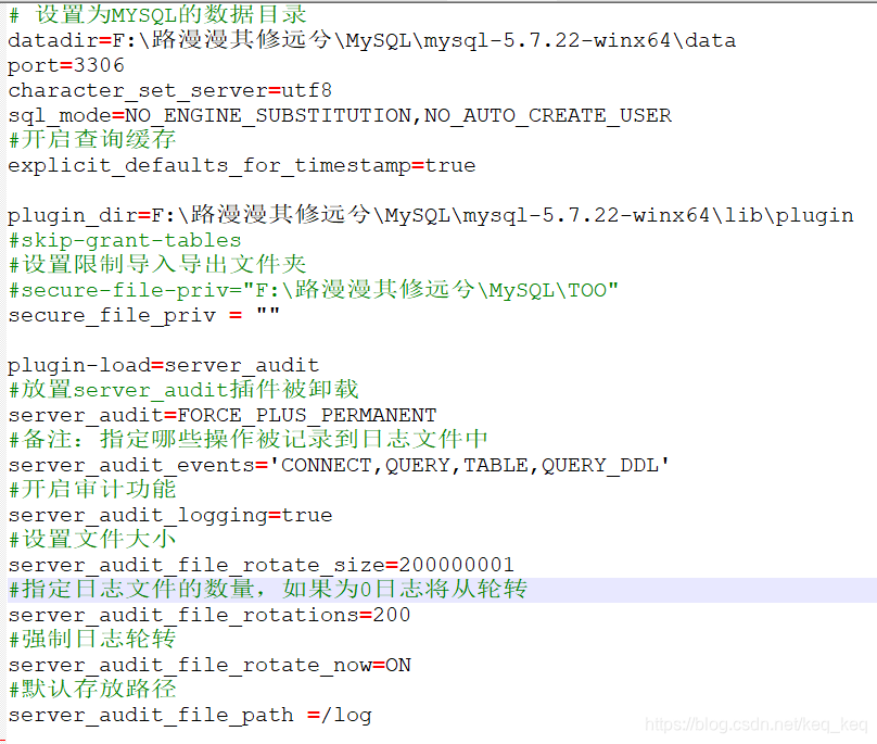 (4.2)配置my.ini文件来修改server_audit的配置: