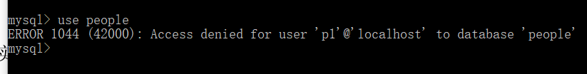 得到error信息:Access denied for user ‘p1’@’localhost’ to database ‘people’.