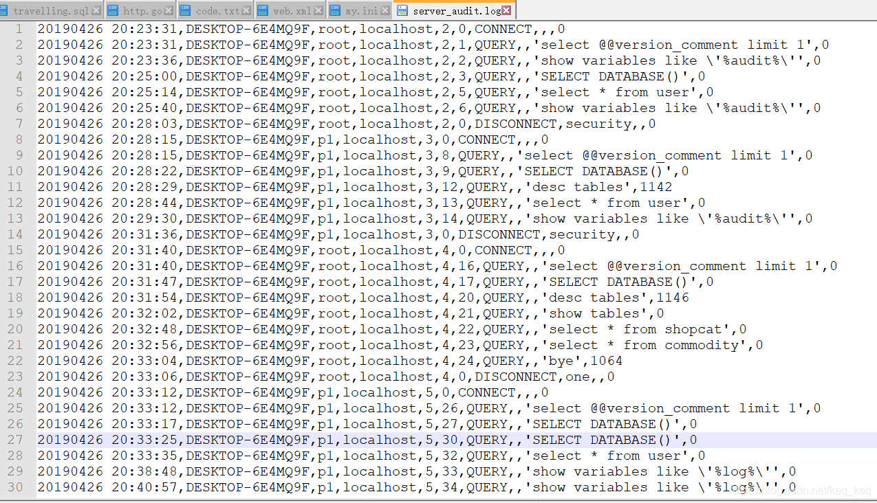 然后进行一些登录和查询修改操作察看是否会存储log文件。