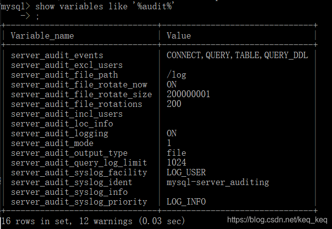 server_audit_excl_users:该列表的用户行为将不记录,connect将不受该设置影响