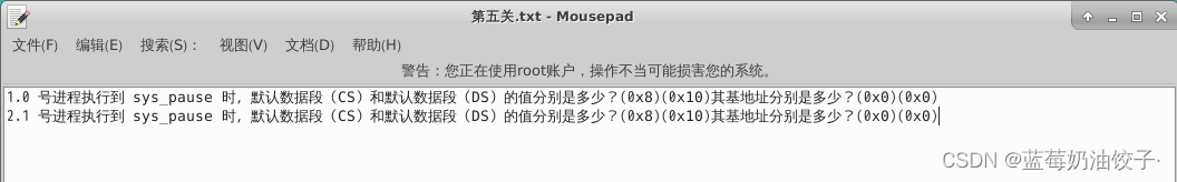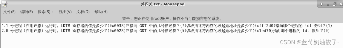 配置环境版本1.3内核与之前一样,详情请移步以下链接~头歌操作系统 课堂练习4.1:段式内存管理 答案_蓝莓奶油饺子·的博客-优快云博客