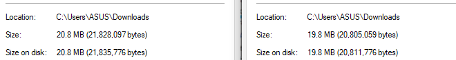 首先数据并没有显示错误,下载到磁盘上也是一个小于20MB,一个大于20MB。