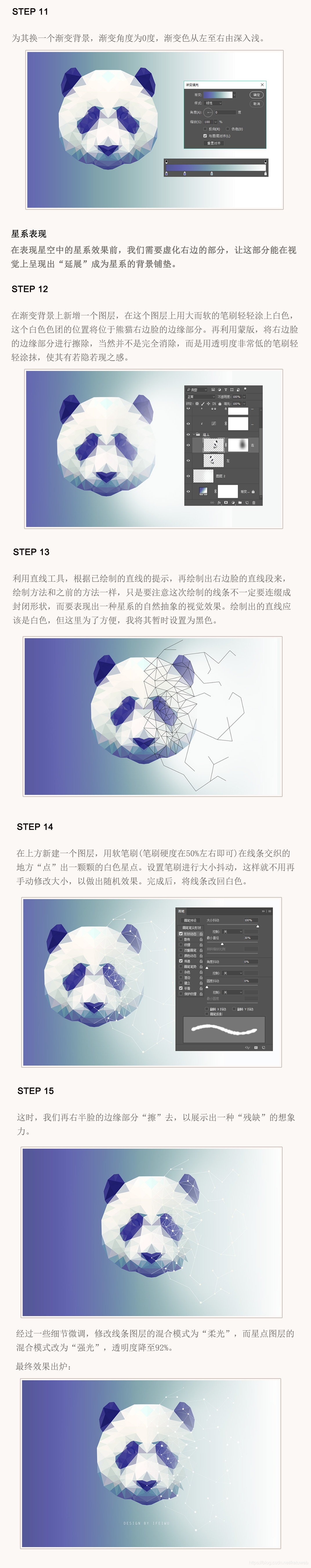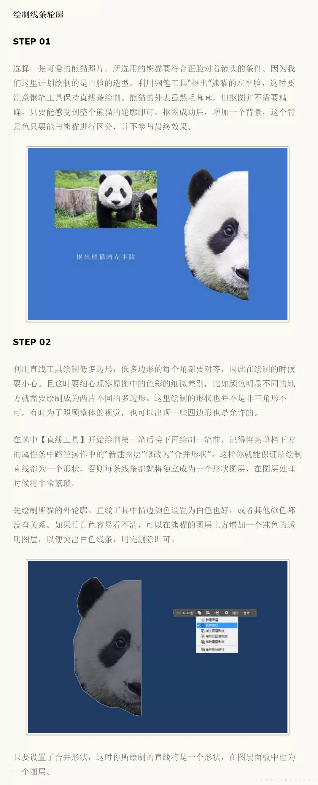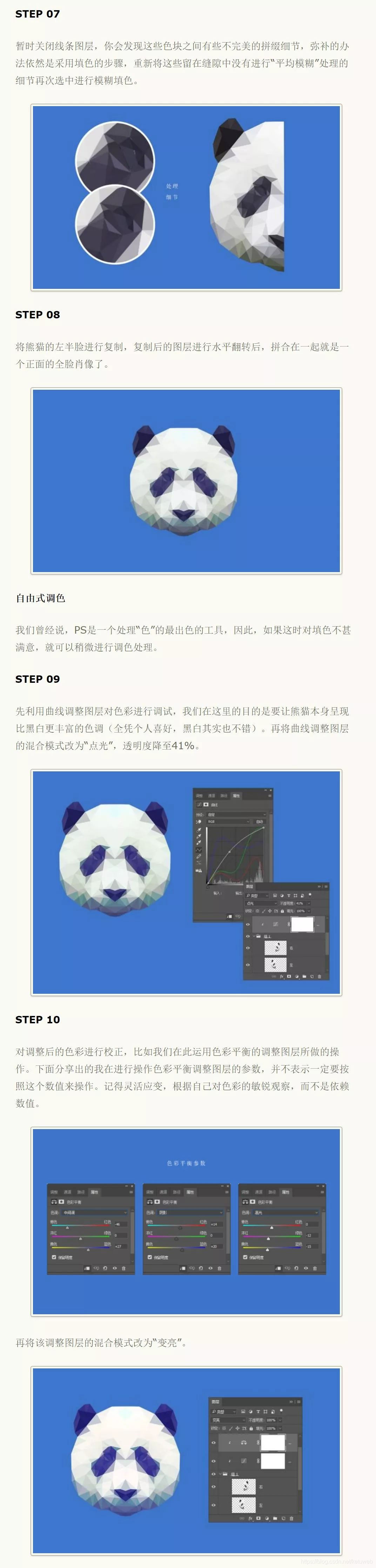 于是,有了我们今天这个“改良版”的低多边形教程,改用PS来绘制低多边形,好处就是PS的色彩处理能力显然优于AI。我自己将PS和AI做了这样的区分:PS是对“色”的处理,AI是对“形”的处理。当我们要在“色”的领域着力时就采用PS,而当我们主要处理对象是“形”,那么AI就是更好的选择。当然这个说法并不绝对,只是我个人的经验之谈。