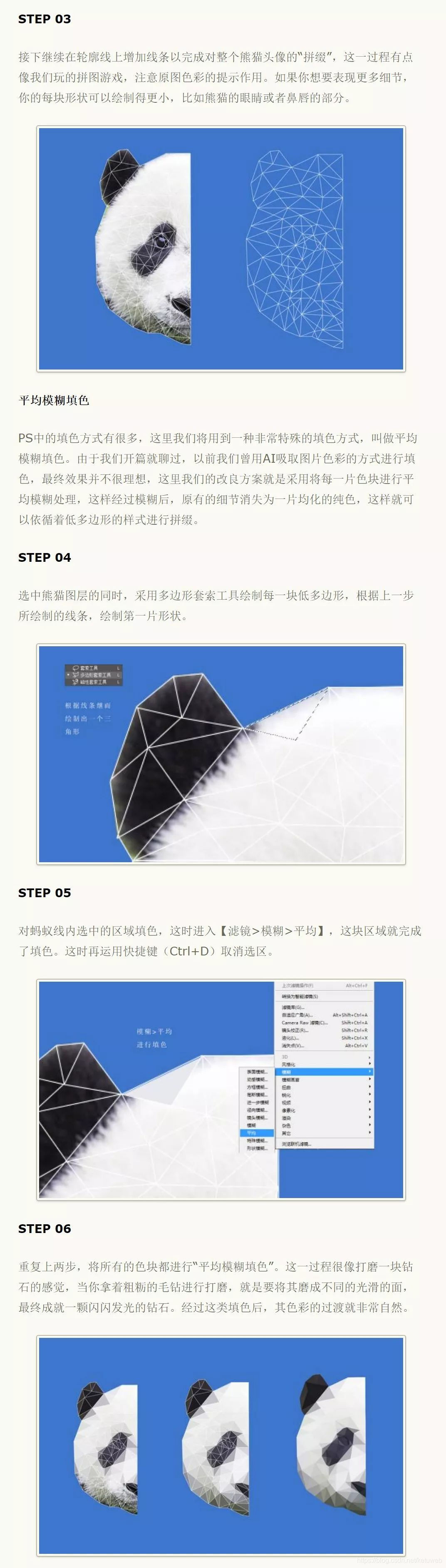 2、利用PS中的平均模糊法来对低多边形的色块进行填色