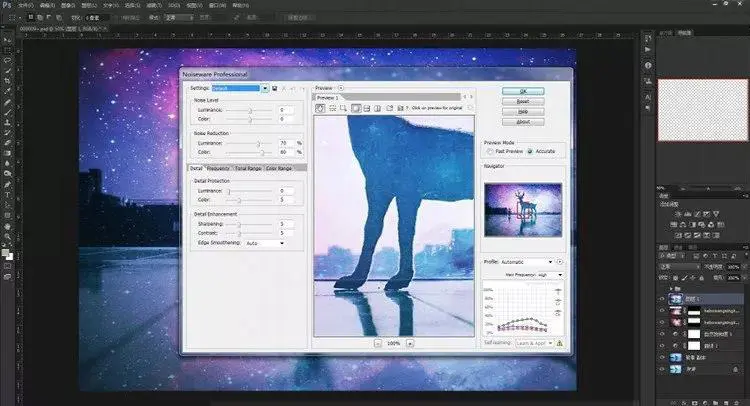 降噪完成,通过合适的滤镜进行处理,可以使过程变得十分简单。