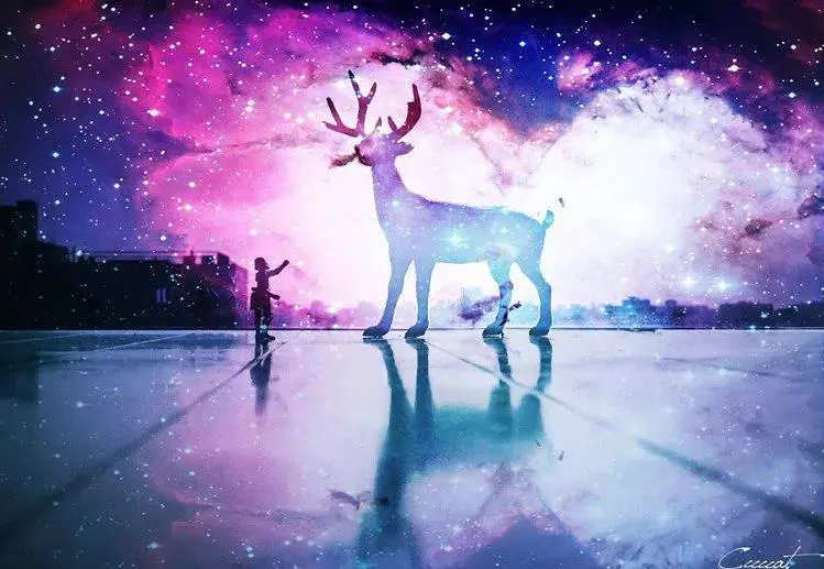 这张作品的名字叫《星空小鹿与蠢货》 出镜:蠢货(小机器人)、小鹿。最近爱上了星空的绚丽画面的色彩,于是也自然收集了一些高清素材。拿着偶然的拍一张特别喜欢的片子,于是就有了个想法:把两者结合起来。我们先来看看这过程前后的效果对比: