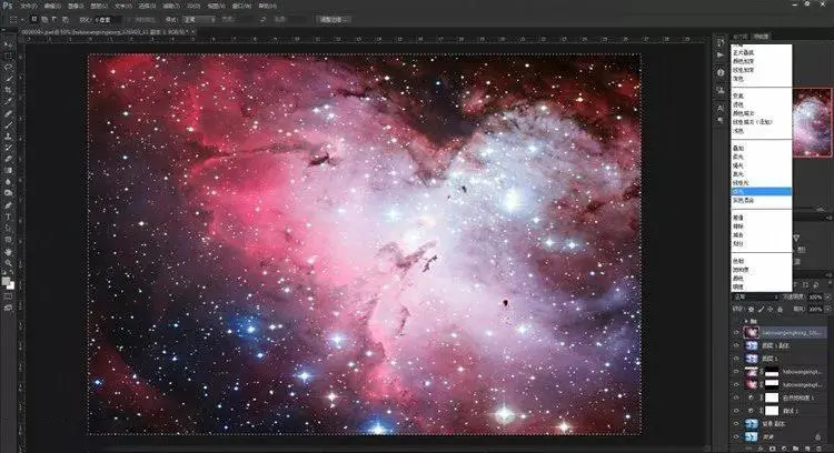 3、好的,再打开一张我之前下载的图,用这张星空来做素材 (∩_∩),可以挑选你觉得风格符合原图的来制作。