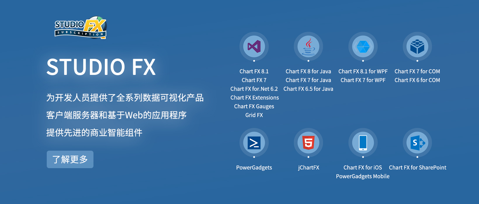 Studio FX订阅以低廉的价格为开发人员提供了全系列数据可视化产品的前所未有的访问权限,包括.NET、Java、COM、SharePoint和Mobility。