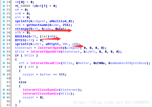 可能是当作后门,或者心跳包存在,隔一段时间与服务器进行通信,让攻击者知道它在运行。代码用加密的(有可能被截断)主机名作为标识符发出一个特定的通信信号,当接收到一个特定的回应后,则终止。