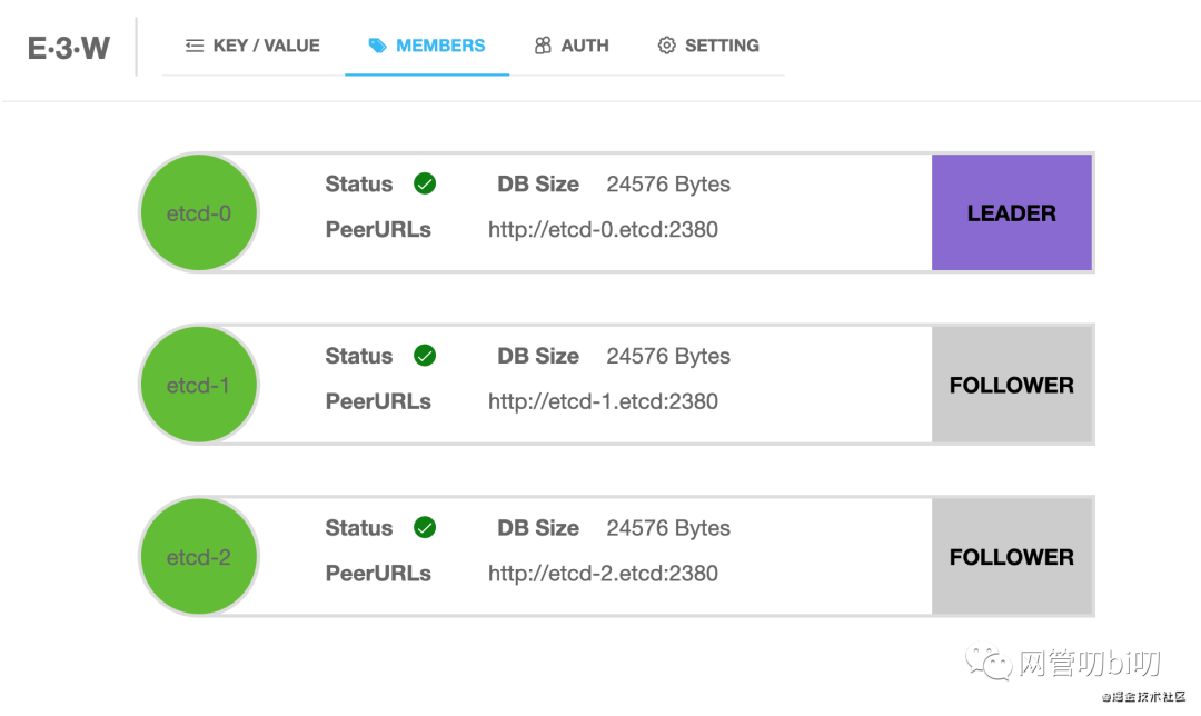 上面创建的Etcd集群里的三个基点和e3w的WebUI服务都能正常运行。
