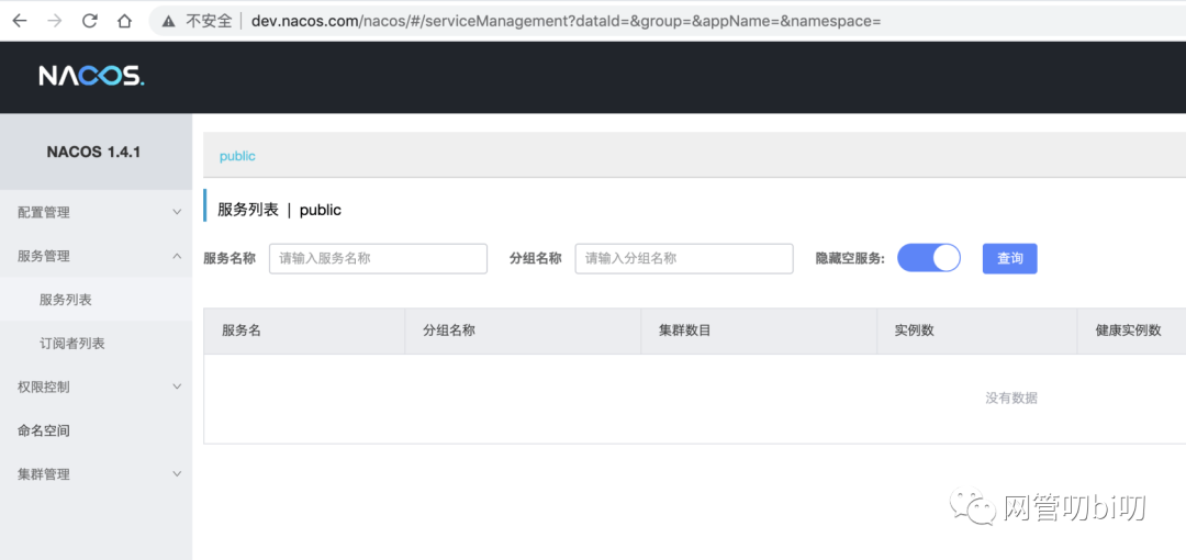 127.0.0.1 dev.nacos.com # 本地K8S集群的IP是127.0.0.1