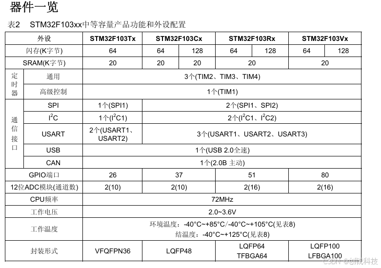2.1介绍:中等容量增强型,32位基于ARM核心的带64或128K字节闪存的微控制器 USB、CAN、7个定时器、2个ADC 、9个通信接口。