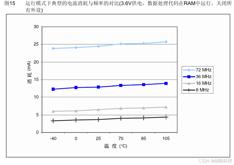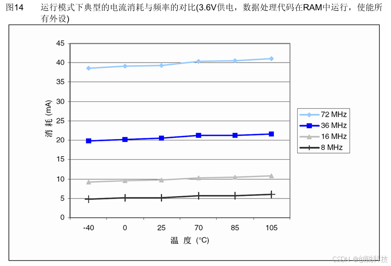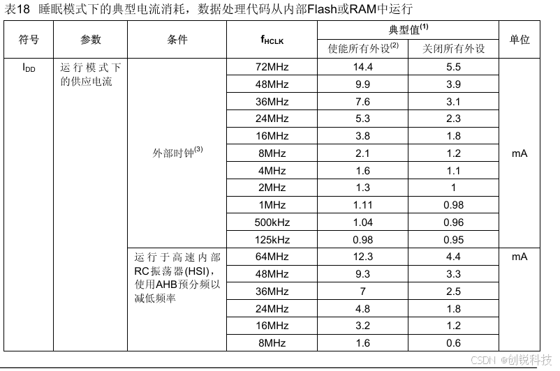 ● 给出的数值是通过测量电流消耗计算得出 − 关闭所有外设的时钟 − 只开启一个外设的时钟