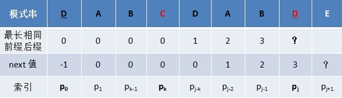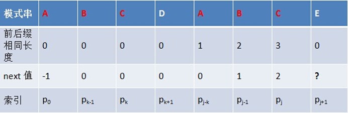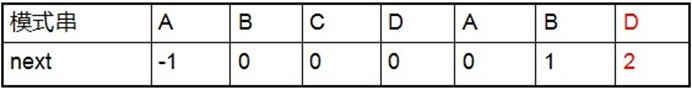 由于next 数组是由最大长度值表整体向右移动一位(且初值赋为-1)得到的,那么失配字符的上一位字符所对应的最大长度值,即为当前失配字符的next 值。