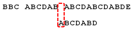 1. 因为模式串中的字符A跟文本串中的字符B、B、C、空格一开始就不匹配,所以不必考虑结论,直接将模式串不断的右移一位即可,直到模式串中的字符A跟文本串的第5个字符A匹配成功: