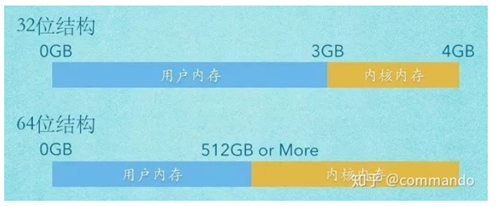 从Linux系统上看,除了引导系统的BIN区,整个内存空间主要被分成两个部分:内核内存(Kernel space)、用户内存(User space)。