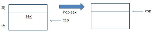 出栈操作:pop eax; 等价于 [esp]->eax,esp=esp+4;如下图