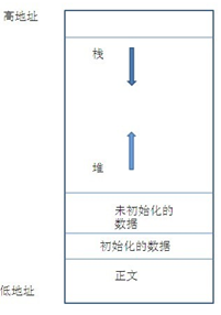 栈是从高地址向低地址延伸的。每个函数的每次调用,都有它自己独立的一个栈帧,这个栈帧中维持着所需要的各种信息。寄存器ebp指向当前的栈帧的底部(高地址),寄存器esp指向当前的栈帧的顶部(地址地)。下图为典型的存取器安排,观察栈在其中的位置