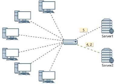 加权轮序是在轮询的基础上,根据服务器的性能差异,为服务器赋予一个的权值,性能高的服务器分配更高的权值。例如下图中,服务器1被赋予的权值为5,服务器2被赋予的权值为1,那么(1,2,3,4,5)请求会被发送到服务器1,(6)请求会被发送到服务器2。