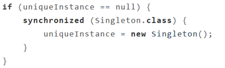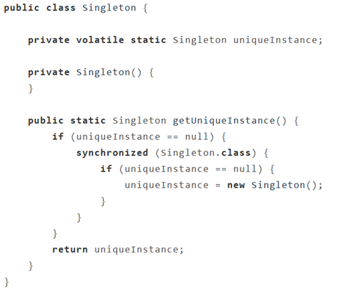 双重校验锁先判断 uniqueInstance 是否已经被实例化,如果没有被实例化,那么才对实例化语句进行加锁。