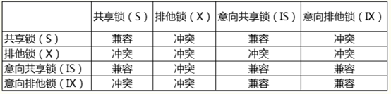 InnoDB的锁定模式实际上可以分为四种:共享锁(S)、排它锁(X)、意向共享锁(IS)和意向排它锁(IX),我们可以通过以下表来总结上面四种锁的共存逻辑关系: