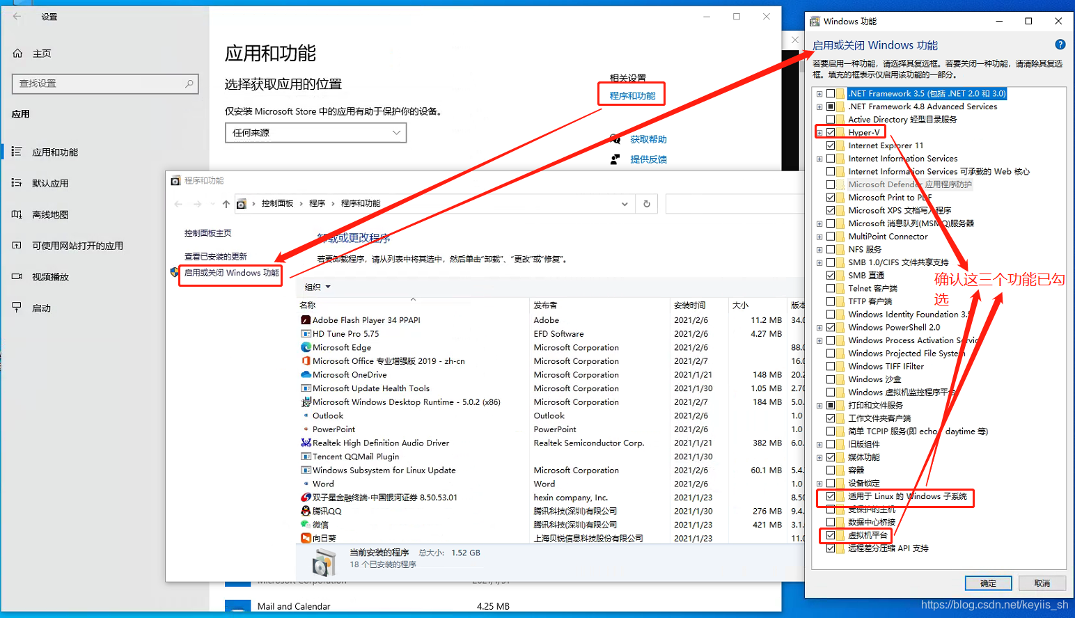 2、安装wsl,win10升级到最新版后,下面的命令将会自动完成以下操作