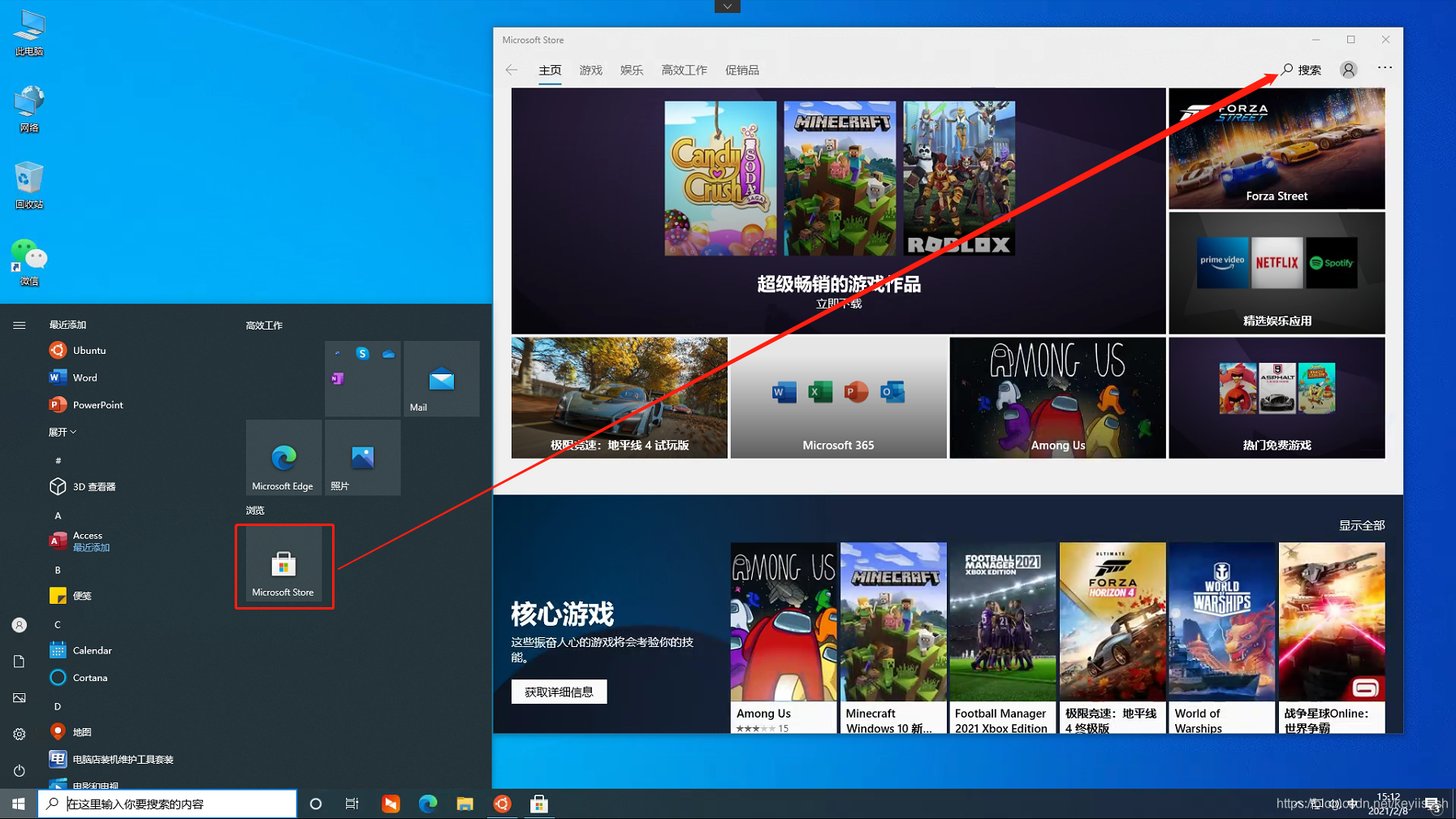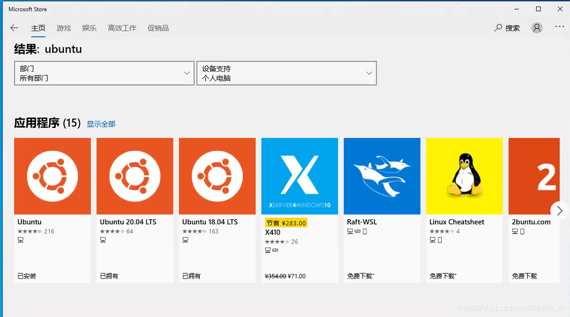4、进入应用商店搜索wsl应用,比如要安装Ubuntu