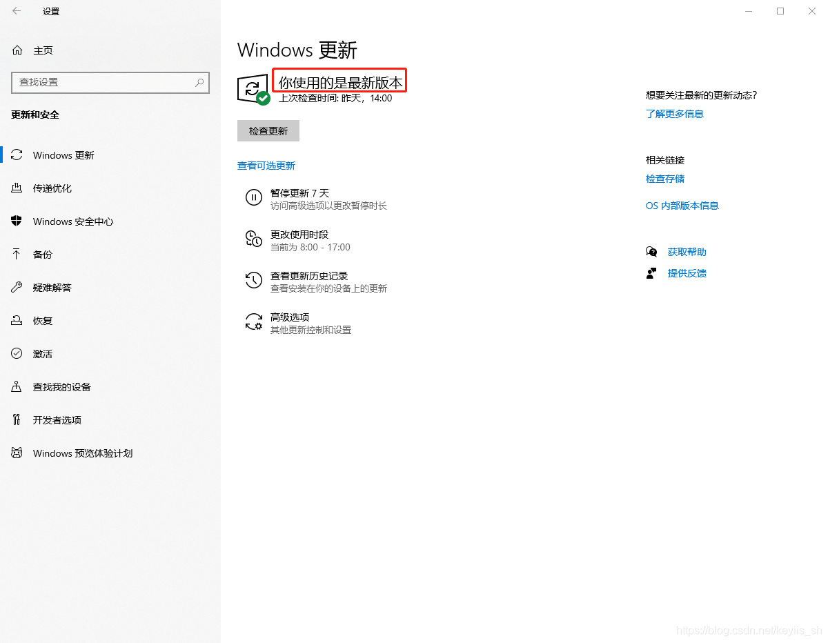2、查看当前win10版本是不是最新版,如果不是则升级到最新版