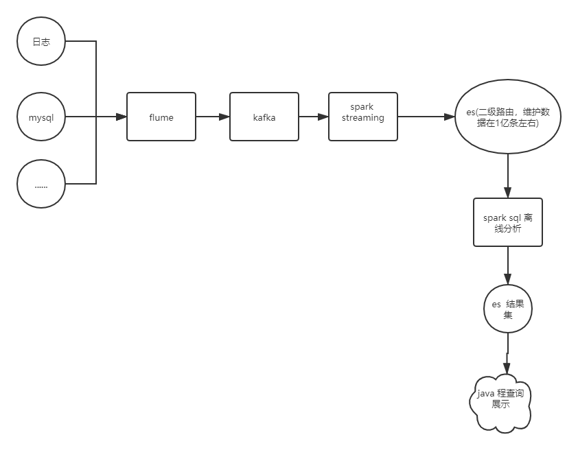 - 方案2. spark streaming 做数据同步,es做数据仓库, spark sql 做离线数据分析