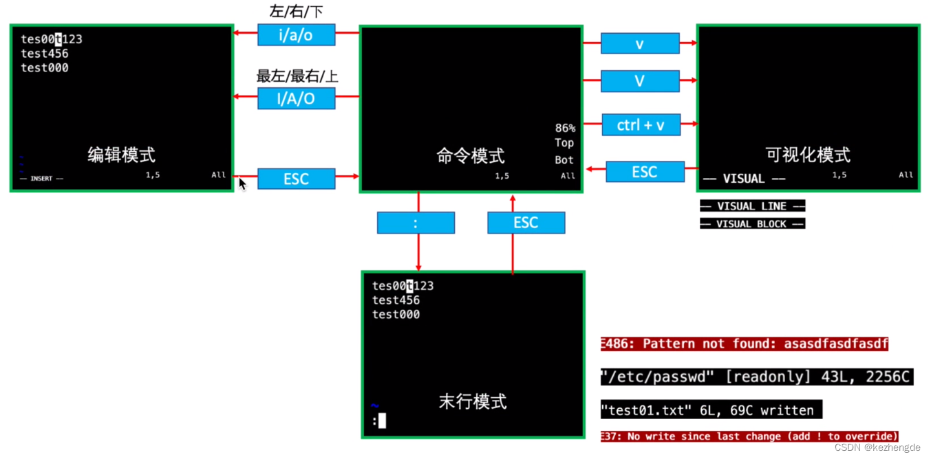 # vim ⽀持多种模式