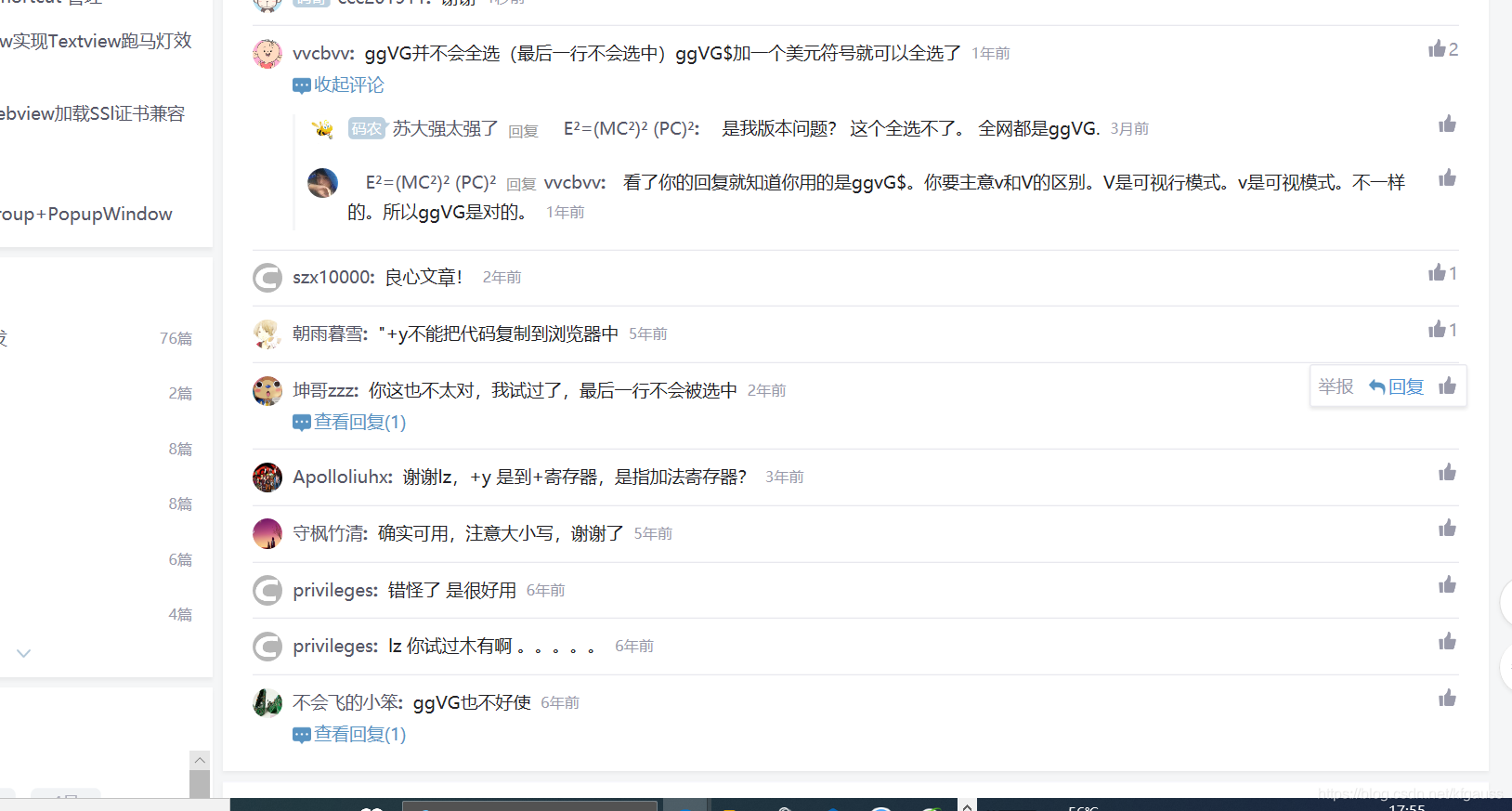 G 光标移到最后一行 选中内容以后就可以其他的操作了,比如: