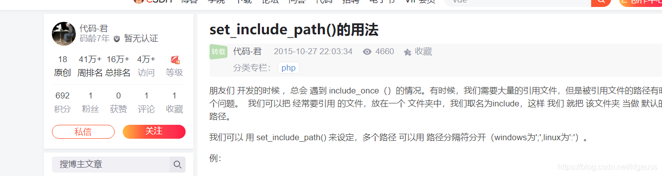 我们可以 用 set_include_path() 来设定,多个路径 可以用 路径分隔符分开(windows为';',linux为':')。