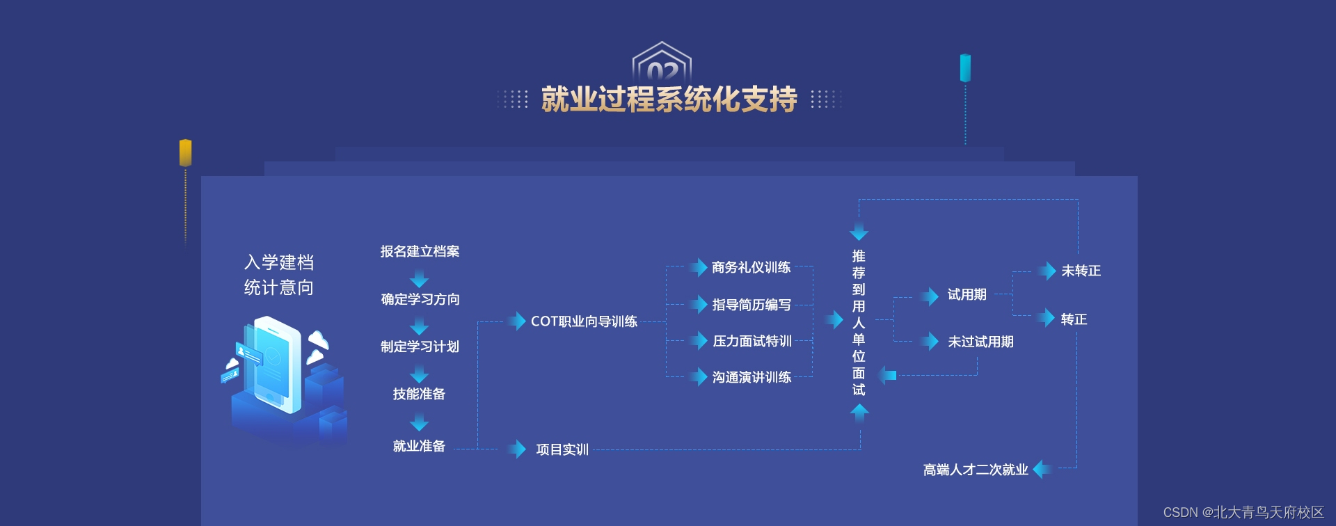 文章指出,随着互联网行业进入成熟期,新的风口转向人工智能、新能源等领域,其中IT技术如Java、云计算和数据分析等扮演关键角色。北大青鸟天府校区强调掌握前沿实用的IT技能以适应市场需求,提供高品质就业机会。
