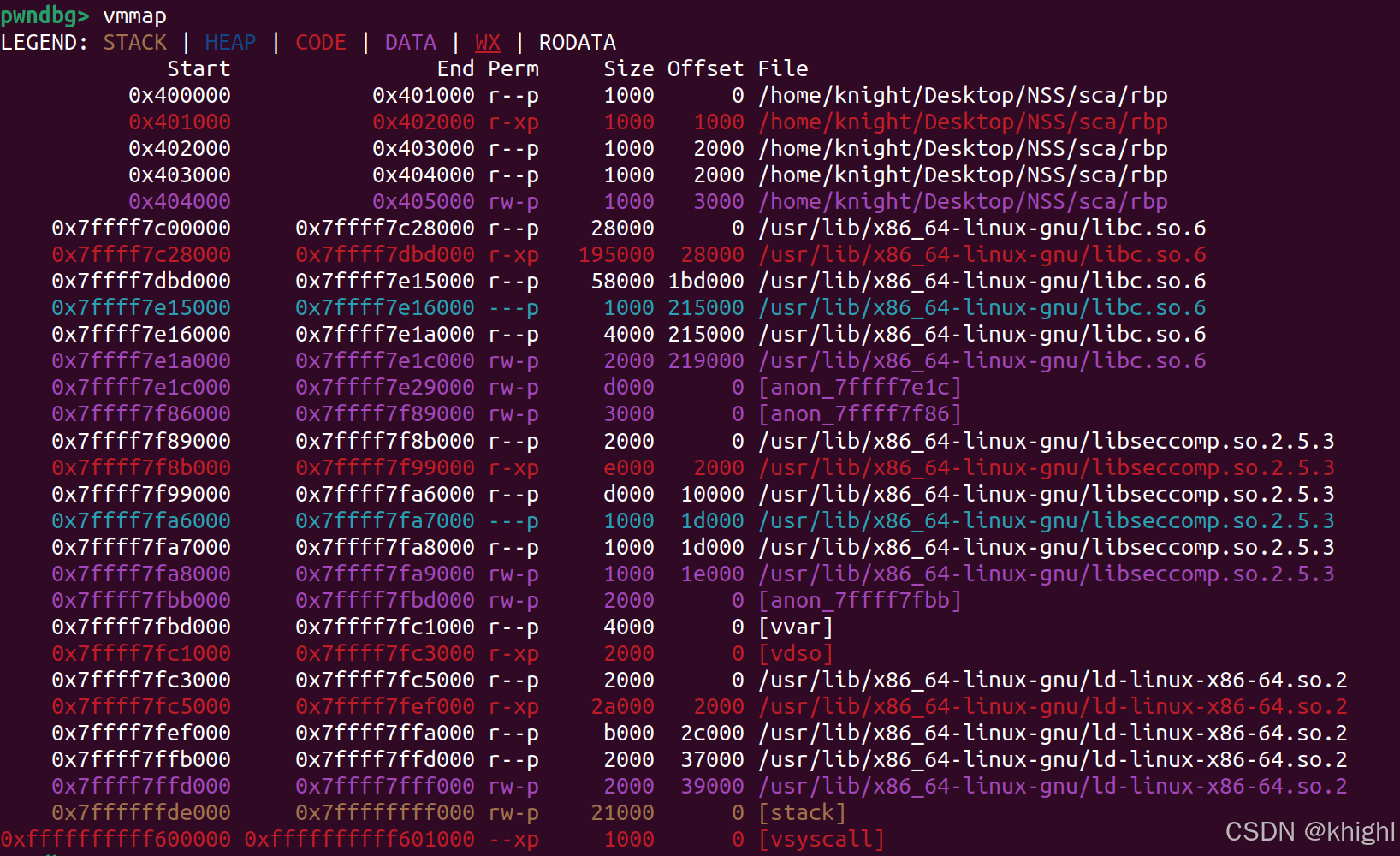 在gdb中调试,寻找可读可写的bss段,因为我们要在bss段上布置rop链