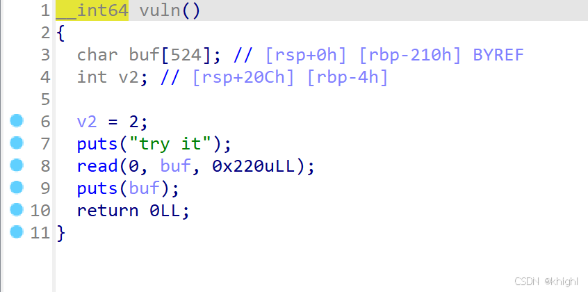 观察IDA反汇编,只发现了一处溢出函数,且只溢出了16字节,明显的栈迁移.