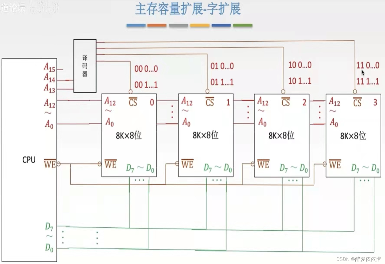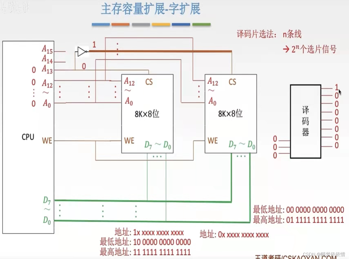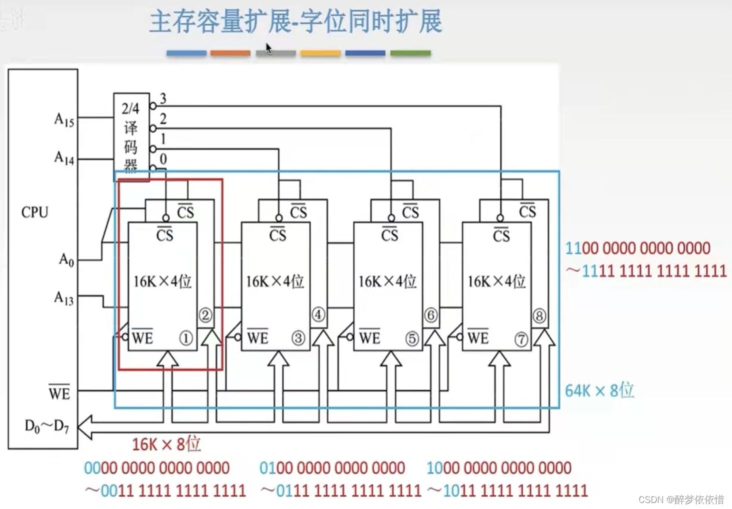 (4)主存容量扩展-字扩展。(译码器使用)