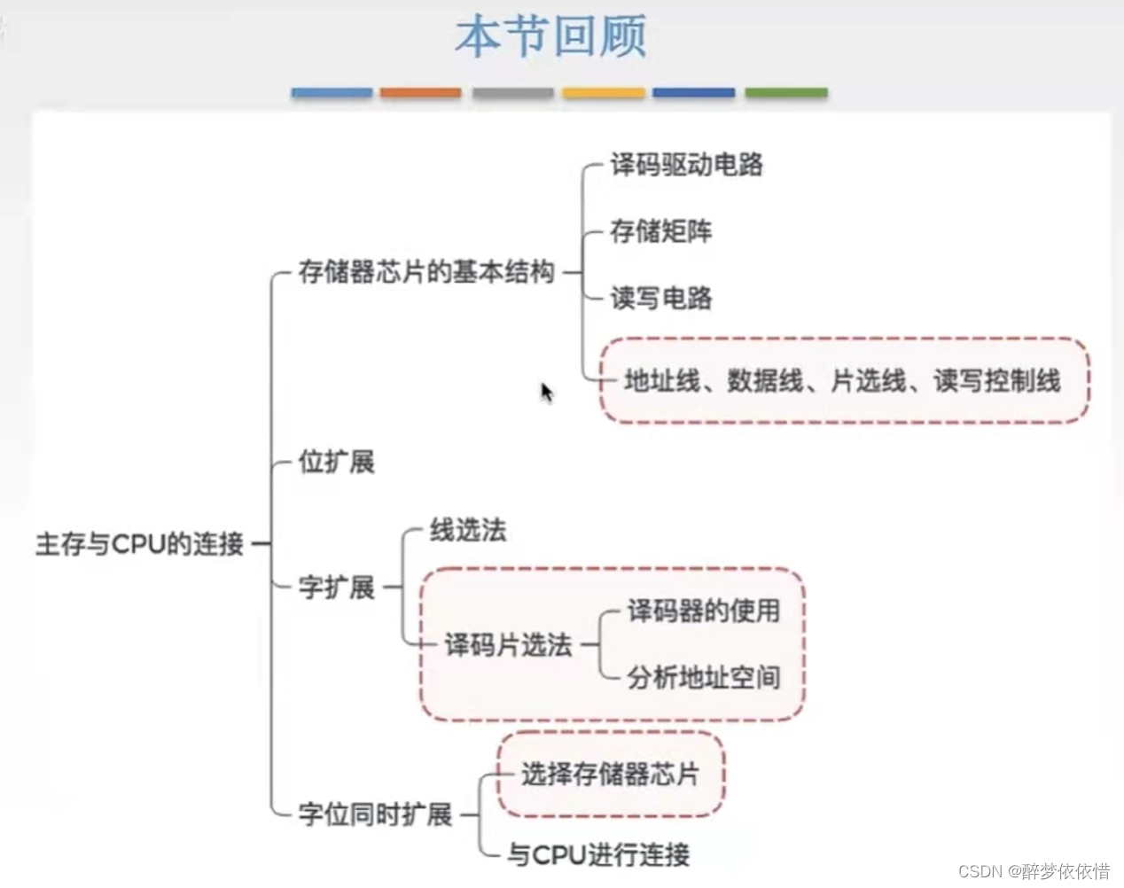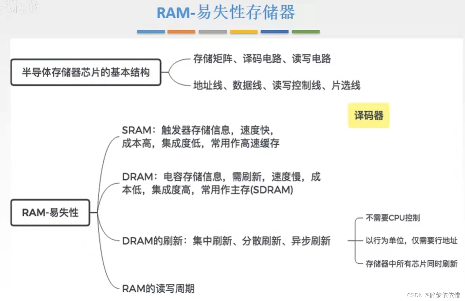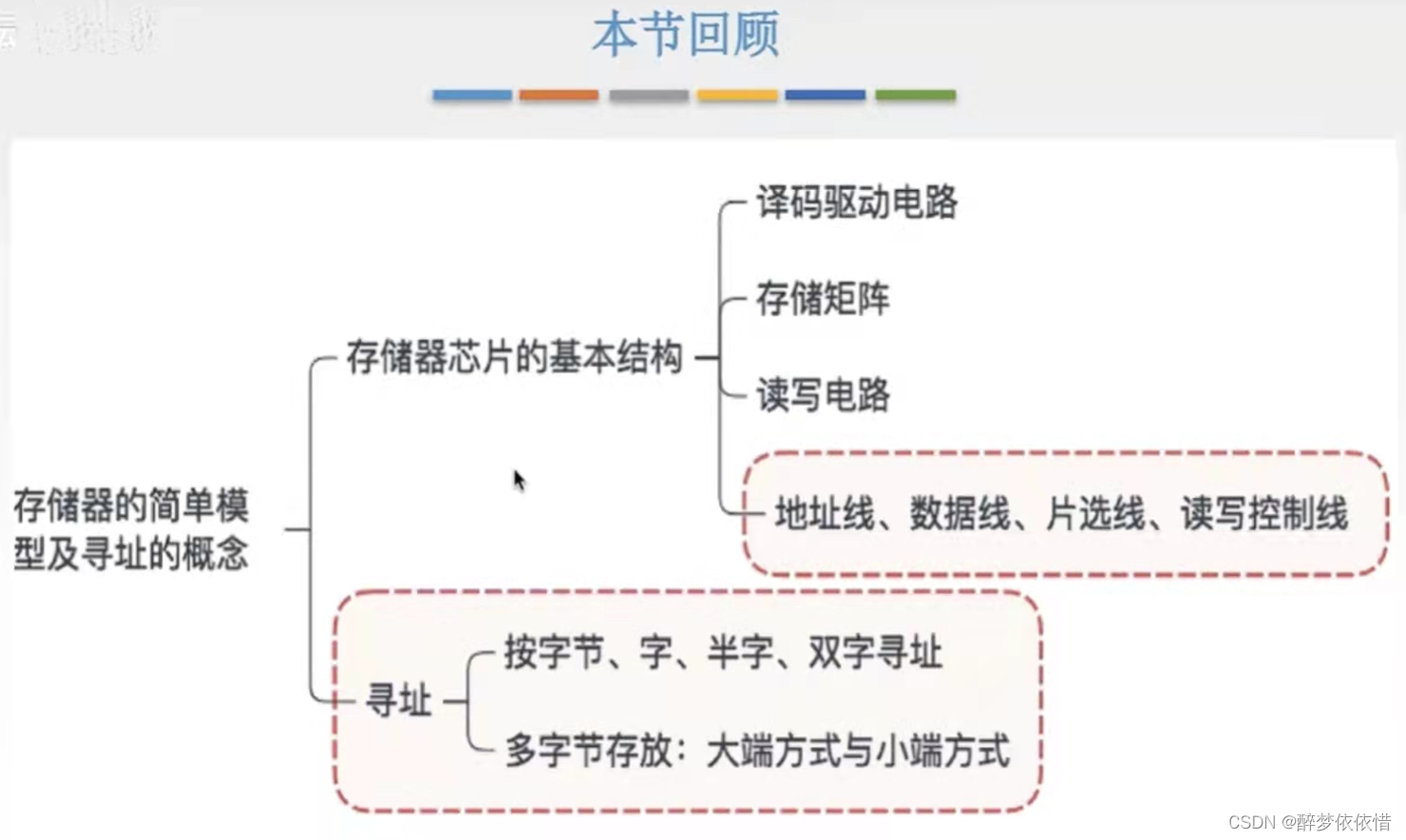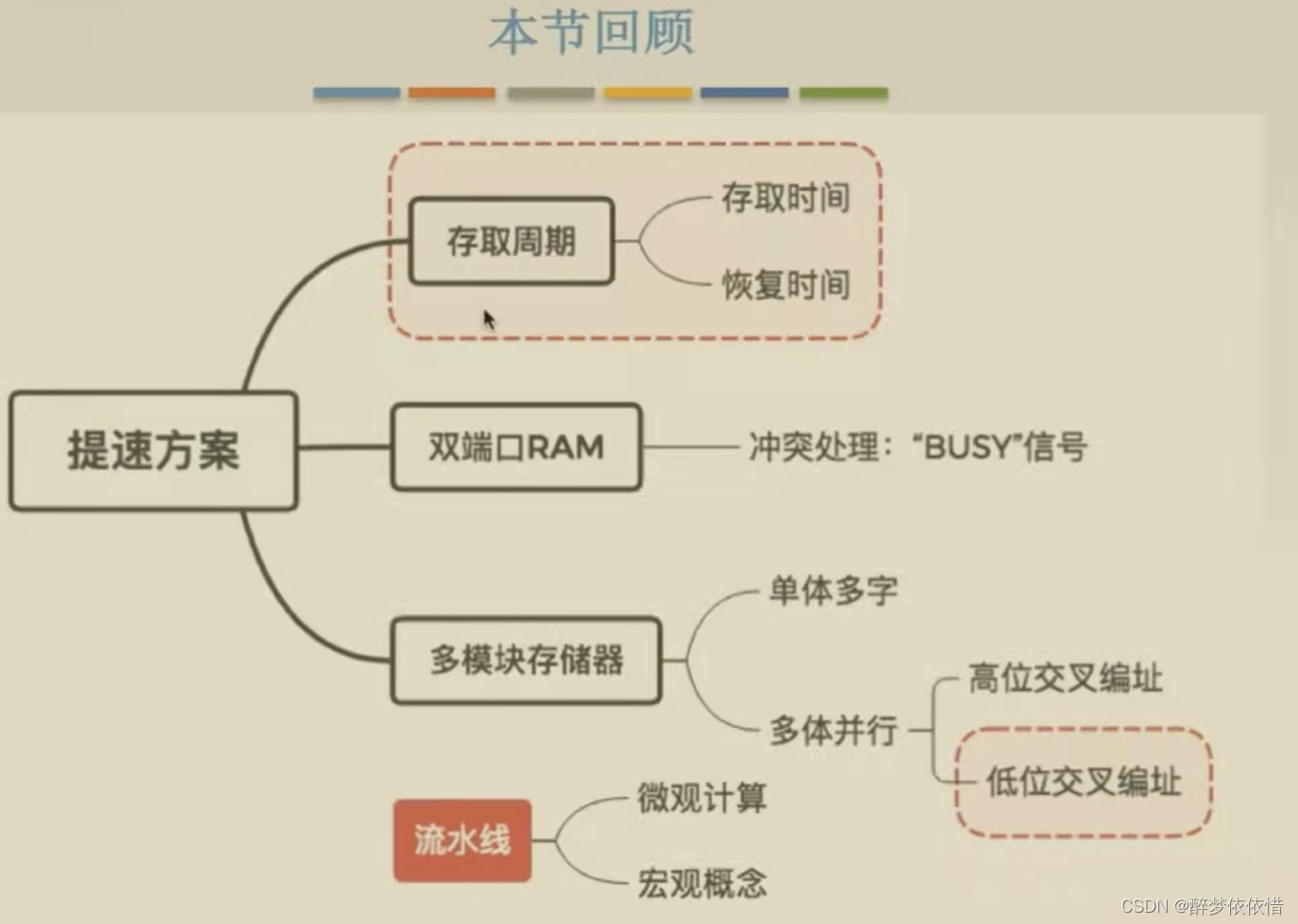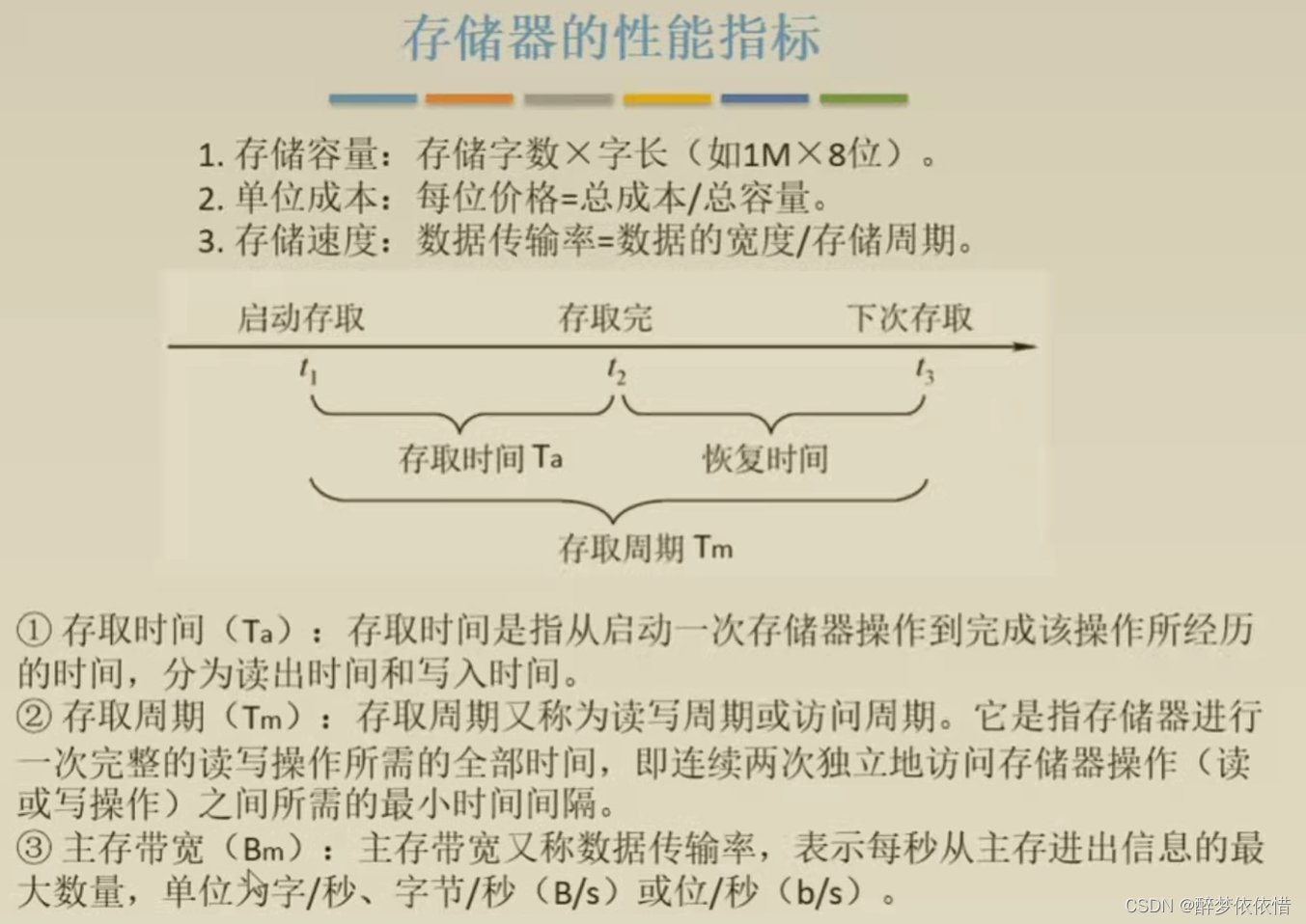 恢复时间:CPU每次访问完存储器,有一段时间内CPU不能再次访问存储器,存储器要过一段时间才能再次被访问,这段时间即称为恢复时间,保证存储器数据的准确性)