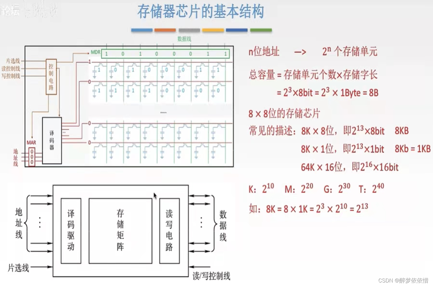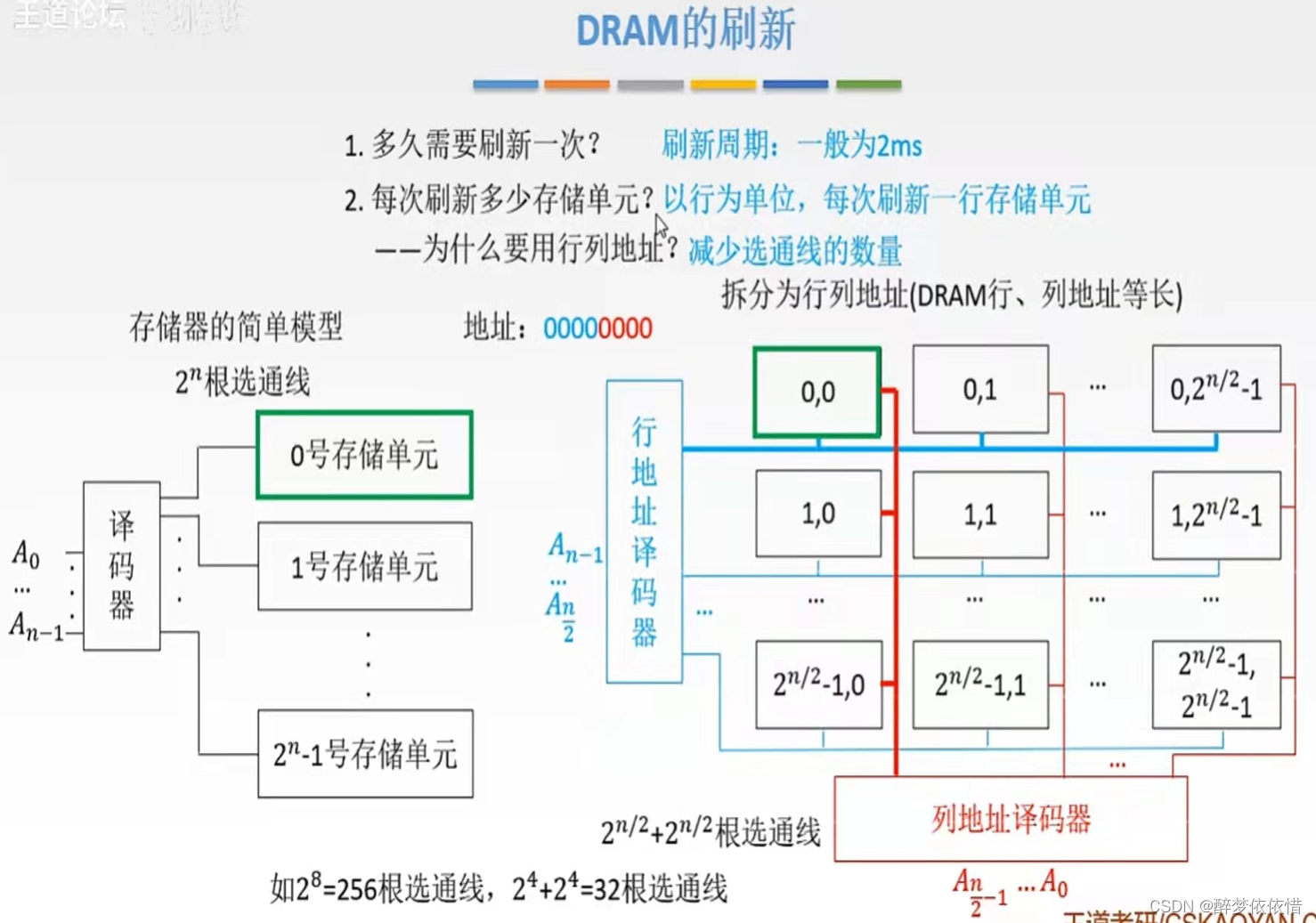 选通线:行列地址可以减少选通线数量(相比->采用一根线选通一个存储单元)。