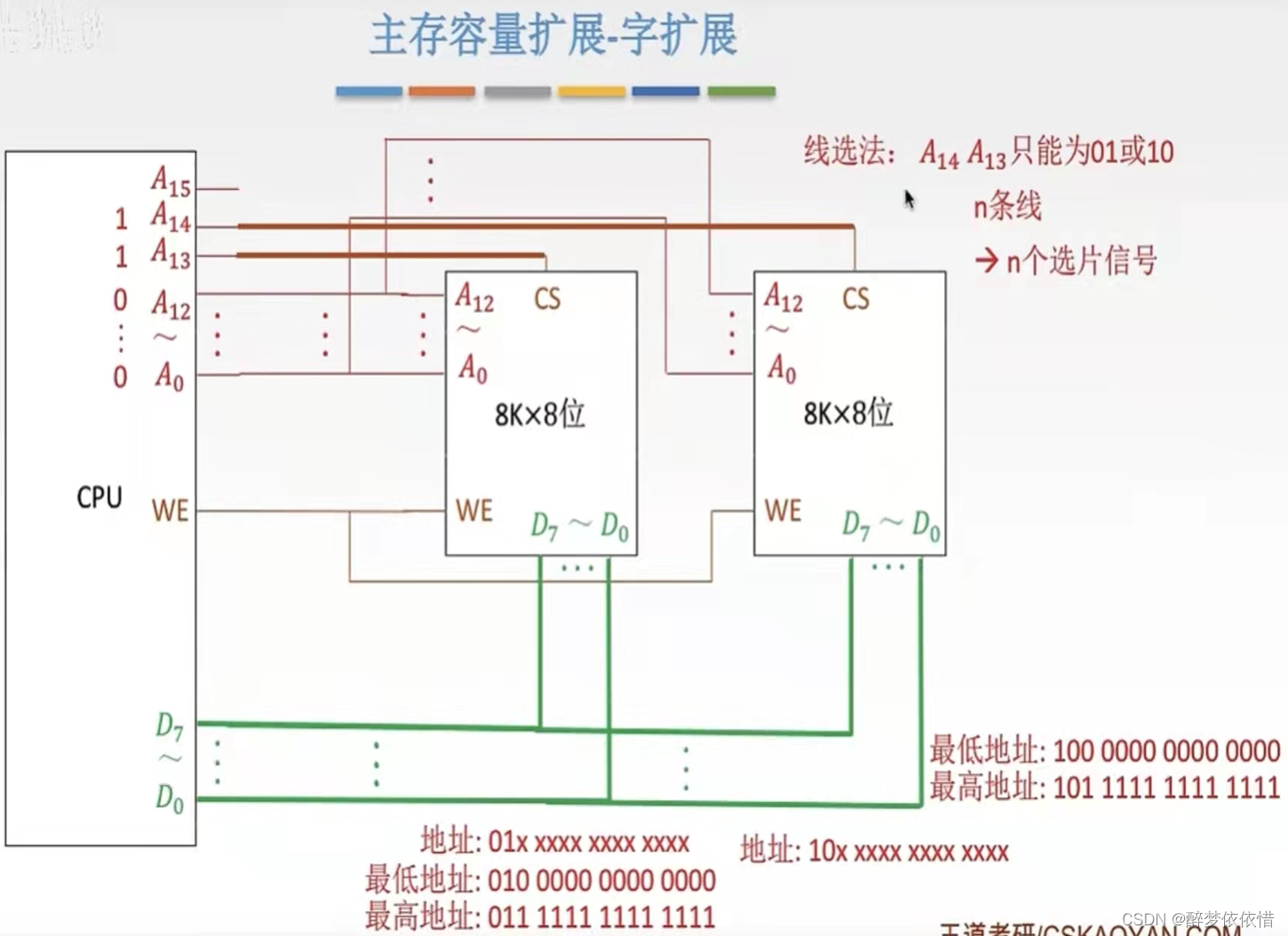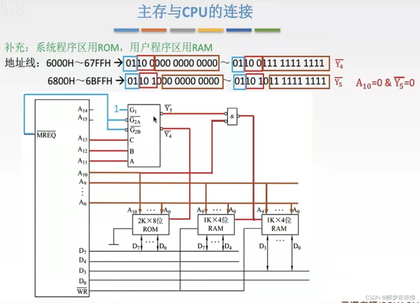 四、主存与CPU的连接的例题。