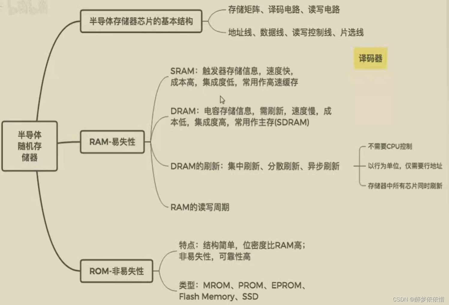 (2)SRAM(常用作Cache)、DRAM(常用作主存)的工作原理。