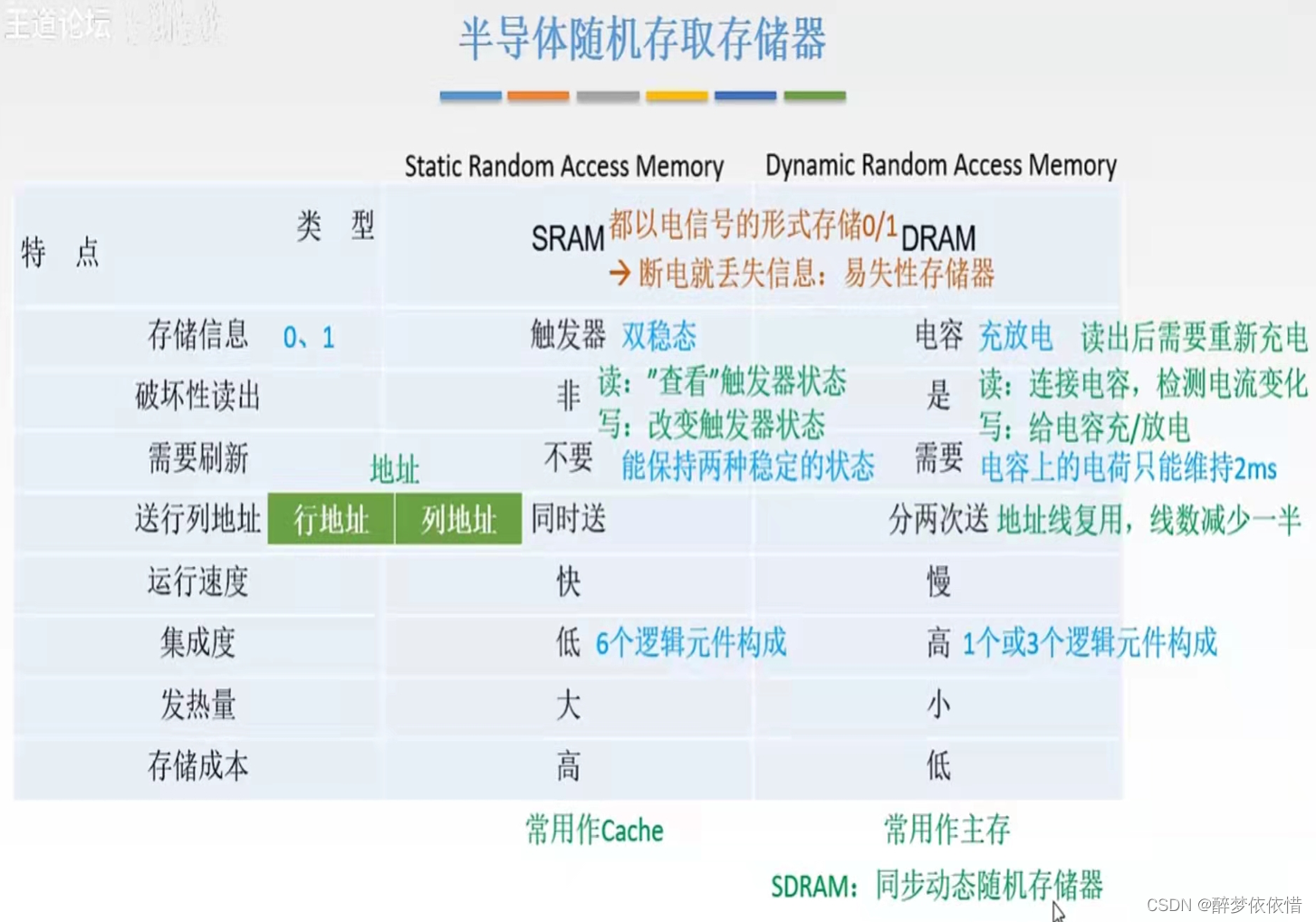SRAM(静态随机存取存储器)、DRAM(动态随机存取存储器)的对比