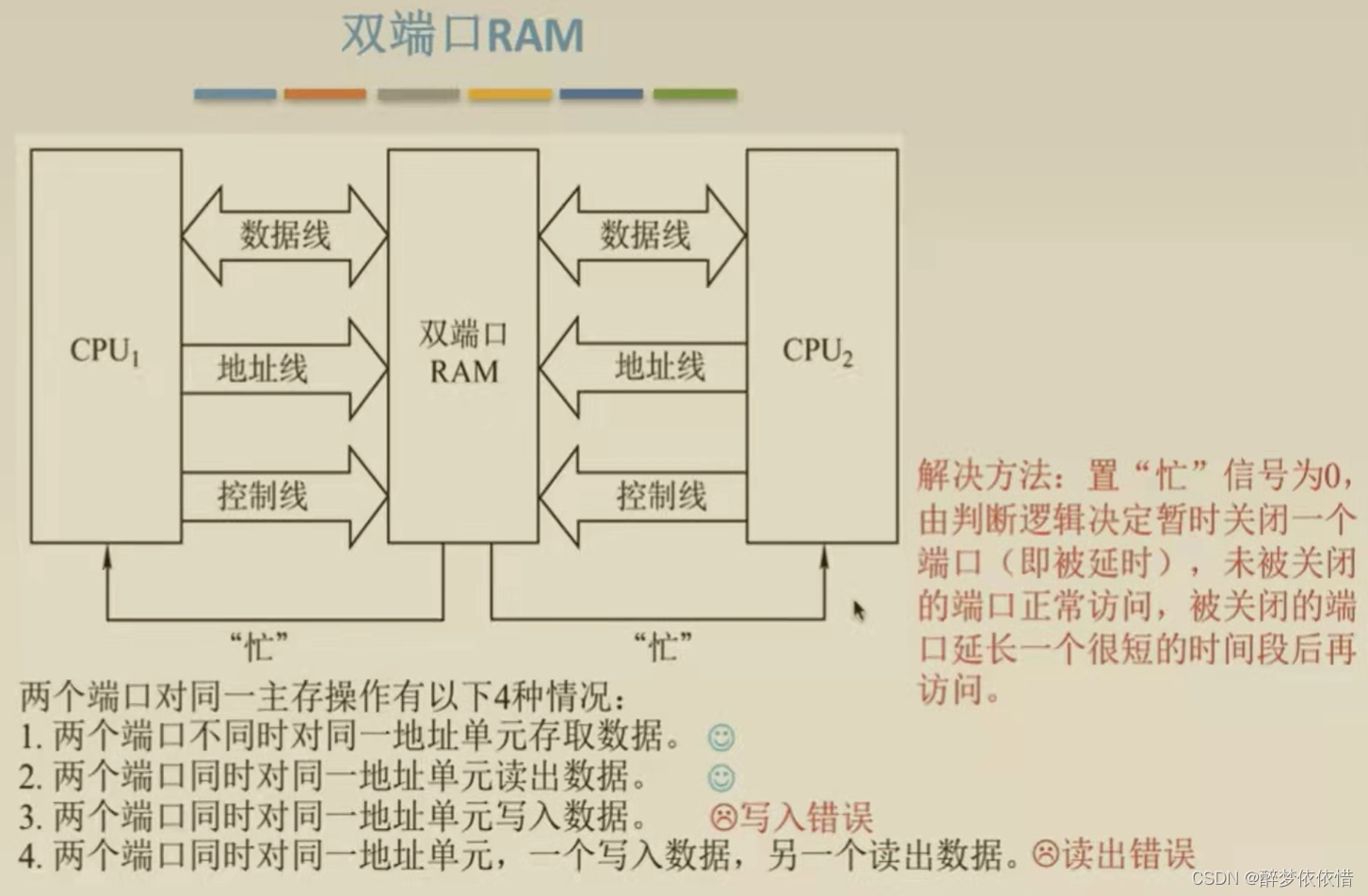读写控制当两个端口同时存取存储器同一存储单元时,便发生读写冲突。