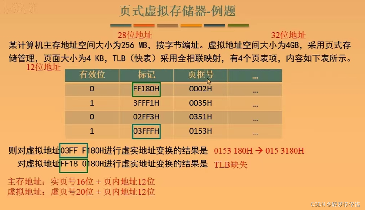 页表是一张存放在主存中的虚页号和实页号的对照表,记录着程序的虚页调入主存时被安排在主存中的位置。