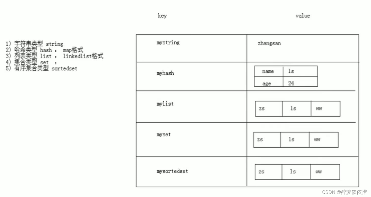 Redis是用C语言开发的一个开源的高性能键值对(key-value)数据库,官方提供测试数据,50个并发执行 100000个请求,读的速度是110000次/s,写的速度是81000次/s ,且Redis通过提供多种键值数据类型来适应不同场景下 的存储需求,目前为止Redis支持的键值数据类型如下: