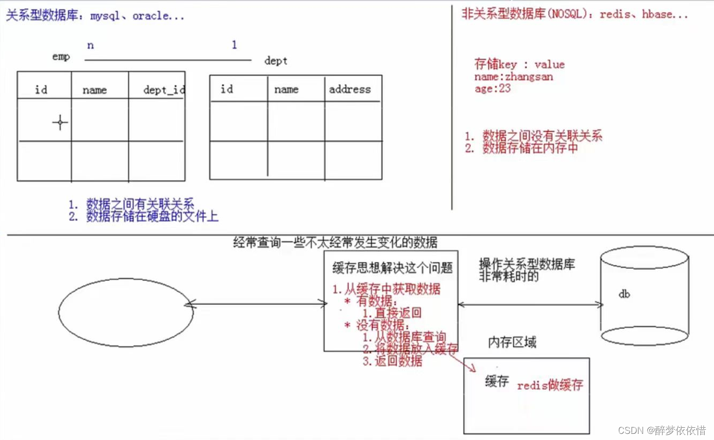 2)查询速度:nosql数据库将数据存储于缓存之中,关系型数据库将数据存储在硬盘中,自然查询 速度远不及nosql数据库。