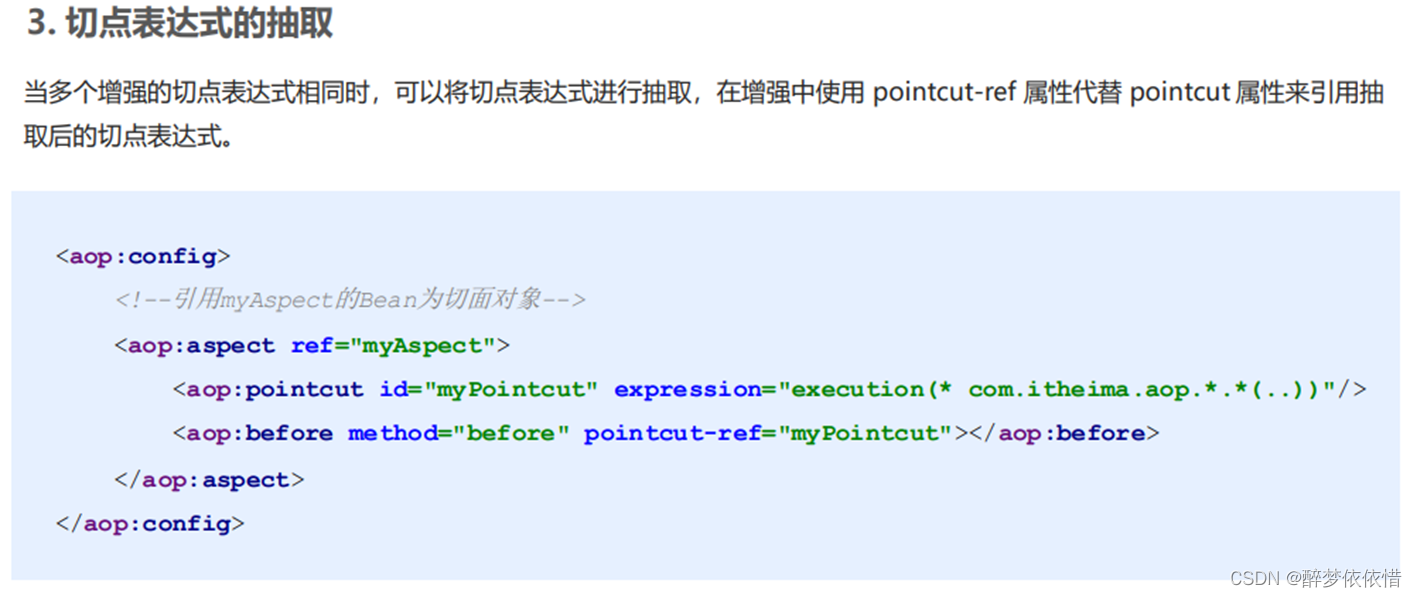 public void pointcut(){ }//这个只是借助这个方法写注解,即便把这个改成字段也行...