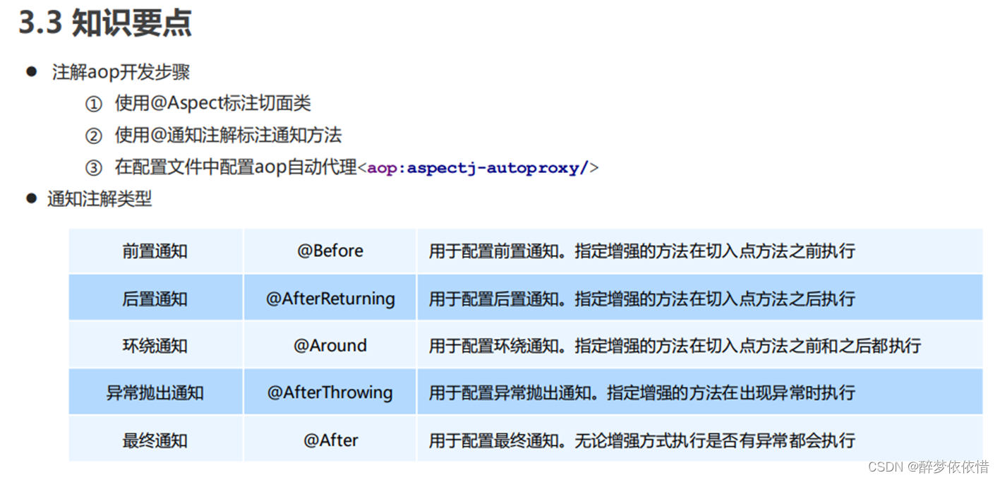 <!--3、配置织入:告诉spring框架,哪些方法需要进行哪些增强(前置,后置,等等...)-->